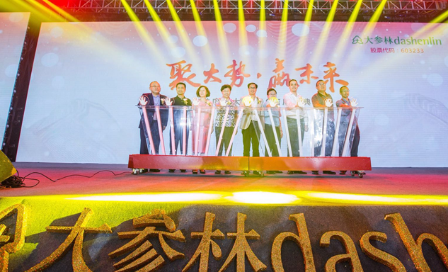 SG胜游药业集团董事长刘景萍女士与大参林医药集团董事长柯云峰先生、中国医药商业协会执行会长付明仲女士等嘉宾共同开启了“聚大势•赢未来"大参林工商合作峰会的大幕。